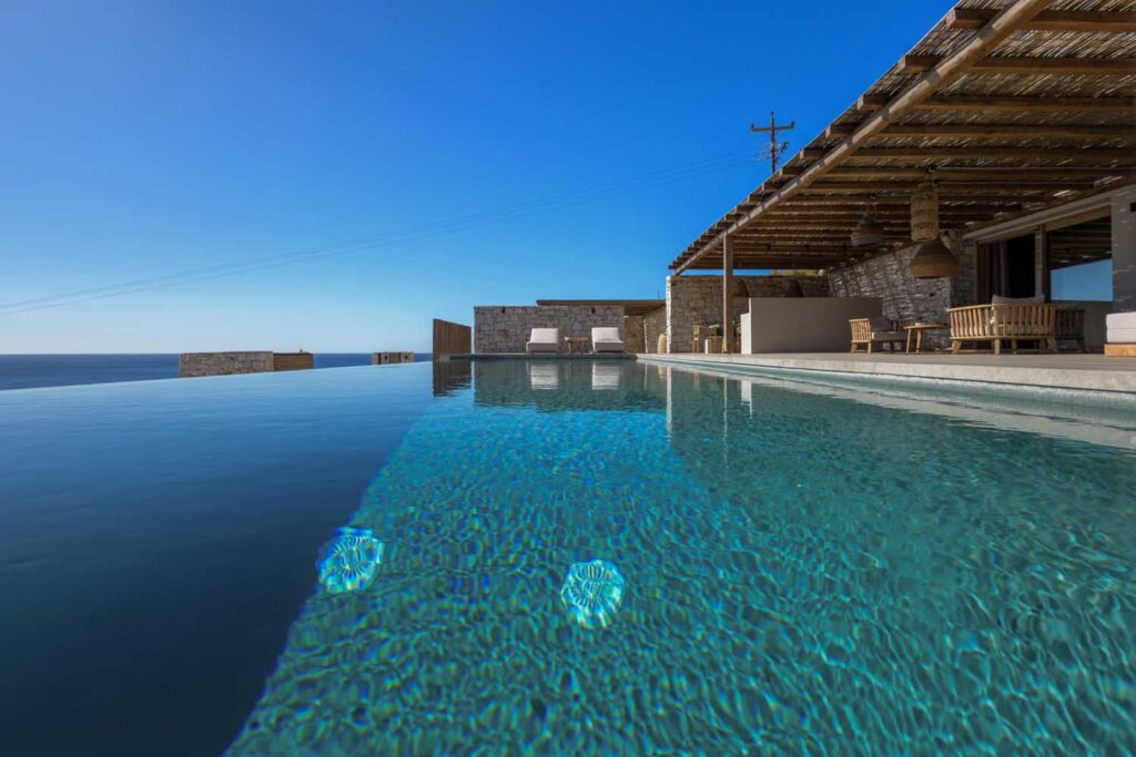 Set in the peaceful area of Agiassos, surrounded by mountains and sea, the villa offers a protected and secluded setting for an exclusive island escape.